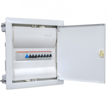 Hochwertige Verteilerserie Volta Hohlwandverteiler 1-reihig VH12NC Angeboten wird eine anschlussfertig vorverdrahtete Unterverteilung. Bestückung Legrand 1x FI 4-pol. + 1x 3pol + 5x 1pol LS B16A. Die Verteiler sind komplett anschlussfertig, mit Verdrahtungsleitung in H07V-K 10mm². In Europa hergestellt.