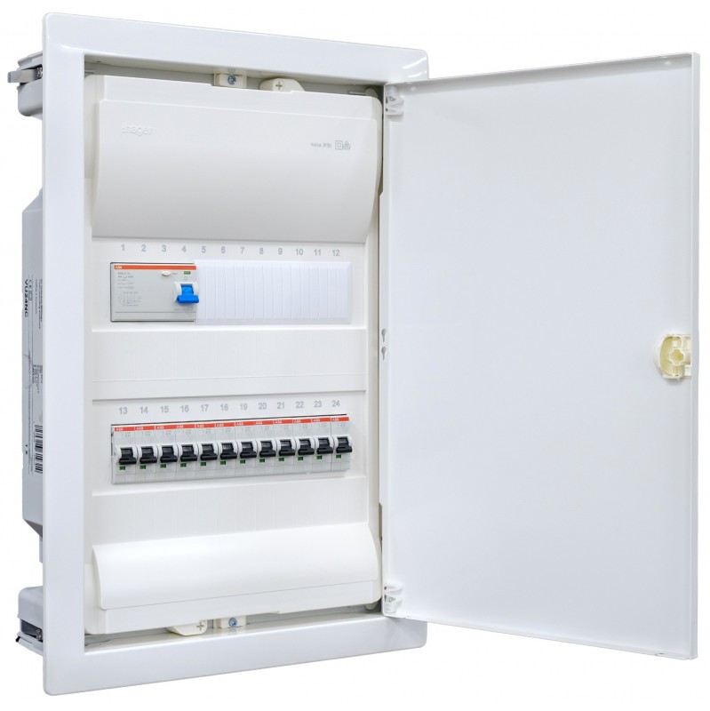 Hochwertige Verteilerserie Volta Hohlwandverteiler 2-reihig VH24NC Angeboten wird eine anschlussfertig vorverdrahtete Unterverteilung. Bestückung Legrand 1x FI 4-polig + 12x LS B16A. Die Verteiler sind komplett anschlussfertig, mit Verdrahtungsleitung in H07V-K 10mm². Jede Unterverteilung wird mit Tür und Hauptleitungsabzweigklemmblock (HLAK) ausgeliefert, dies gewährleistet eine schnelle unkomplizierte Montage. In Europa hergestellt.