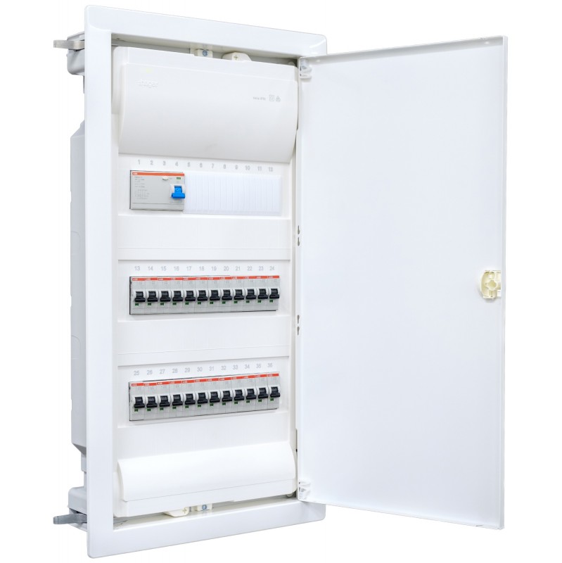 Hochwertige Verteilerserie Volta Hohlwandverteiler 3-reihig VH36NC Angeboten wird eine anschlussfertig vorverdrahtete Unterverteilung. Bestückung Legrand 1x FI 4-polig + 24x LS B16A. Die Verteiler sind komplett anschlussfertig, mit Verdrahtungsleitung in H07V-K 10mm². Jede Unterverteilung wird mit Tür und Hauptleitungsabzweigklemmblock (HLAK) ausgeliefert, dies gewährleistet eine schnelle unkomplizierte Montage. In Europa hergestellt.