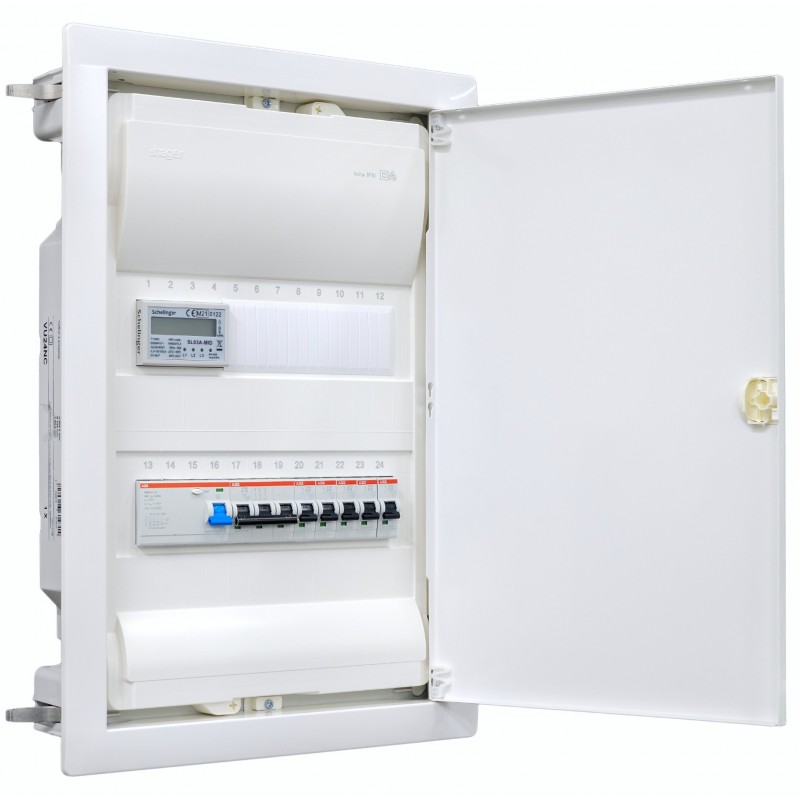 Mit Zähler Bestückter Hager Hohlwandverteiler 2-reihig VH24NC ANSCHLUSSFERTIG verdrahtet mit Klemmblock. Bestückung Legrand 1x F